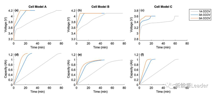 所謂的加速充電模式是在CCCV充電模式的基礎(chǔ)上增加了一個大電流的CC或者恒功率充電過程,從而達(dá)到降低充電時間的目的(如下圖e所示),有研究表明加速充電模式能夠有效的提升鋰電池的充電效率,同時又不會對鋰電池的循環(huán)壽命產(chǎn)生顯著的影響。